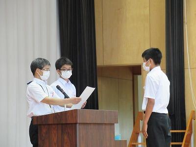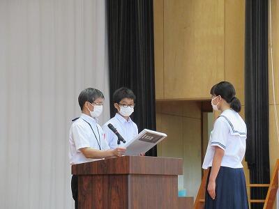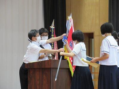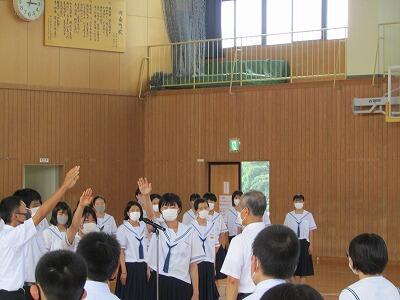 昨日の中学校秋季体育大会激励式の様子です。キャプテンが決意や目標を述べてくれました。新型コロナウイルス感染症拡大のため、大会延期や夏休みの練習中止、大会や練習試合の中止など大きな制限を受けました。ただ、どの学校も同じですので、自分たちの力を信じて、最後まであきらめることなくプレーしてください。応援しています。