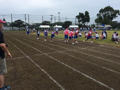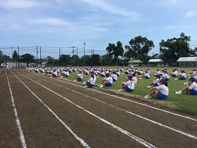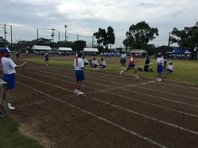 2年の体育の授業です。バドミントンをしています。(昨日)