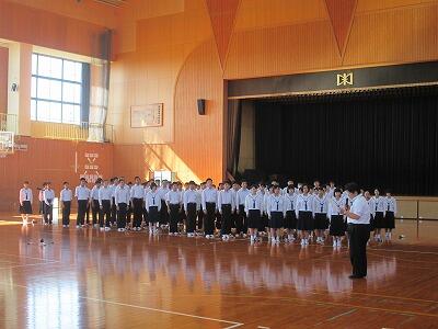 卒業式に向けて、全校生徒で歌の練習中です。体育館にすばらしい歌声が響いています。もっともっと歌声を響かせて、すばらしく感動的な卒業式にできたら…と思います。