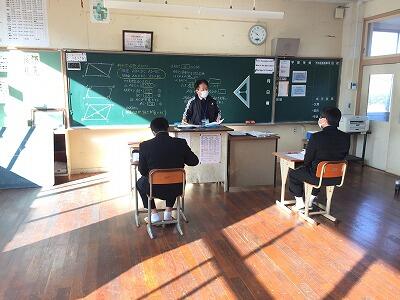 2年生の数学です。少人数指導で図形の問題に取り組んでいます。↓