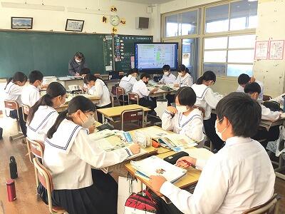 研究大会の1B英語の授業の様子です。たくさんの先生方の参観でしたが一生懸命取り組みました。↓