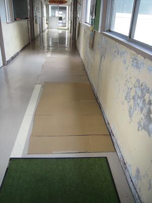 大きい段ボールを廊下に敷き、水分を吸着します。