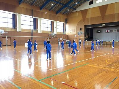 1年の保体です。バレーボールで円陣を組んでパスをしています。↓