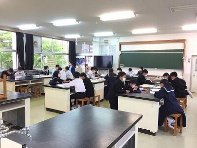 2年の理科です。実験の進め方の説明を聞いています。↓