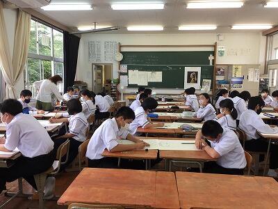 3年の教室です。黙々と取り組んでいます。