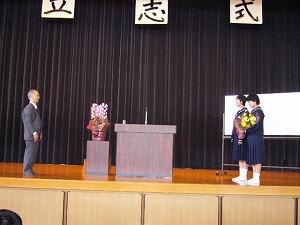1年 河野巴美さん(松永龍弥さんが病気欠席のため、松永くんの用意した原稿を発表してくれました。) 2年 竹田ひかるさん 生徒会 杉尾真吾さん