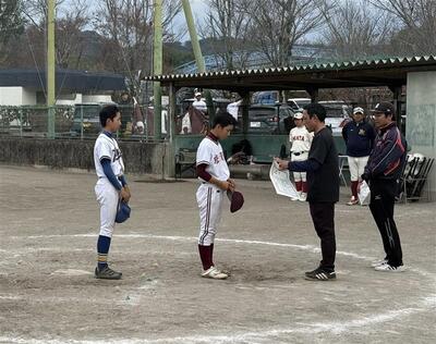 本校は、野球部員が少なく、唐瀬原中学校との合同チーム編成しております。昨年の地区秋季体育大会では、力を発揮できず初戦敗退しておりました。この冬にしっかり鍛え、この結果に繋がりました。