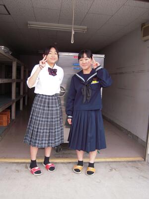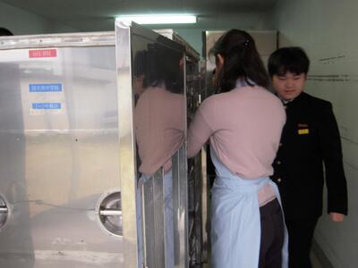 給食委員会の委員長と副委員長です。毎日、欠かすことなく、この給食コンテナ室にやって来て、お手伝いをします。毎日、ありがとう!!