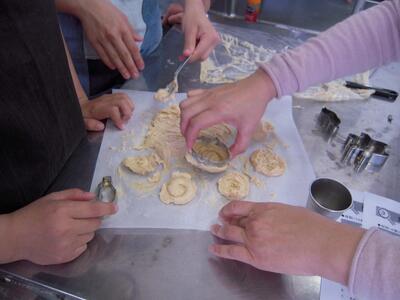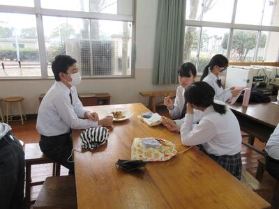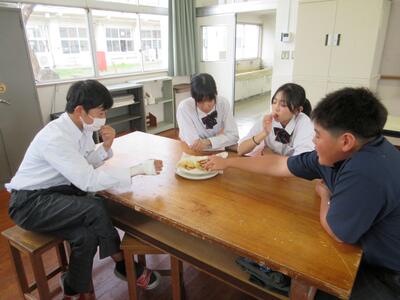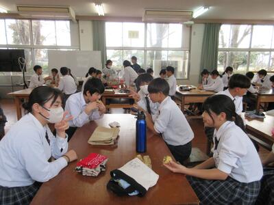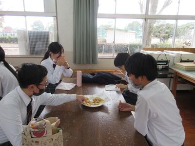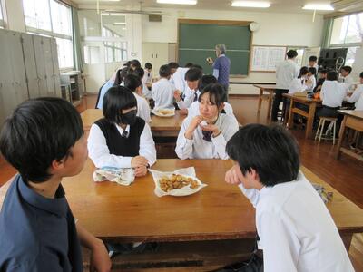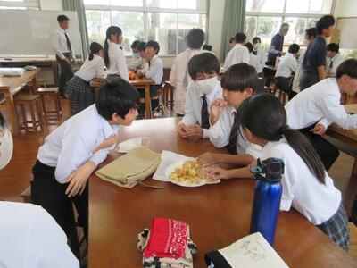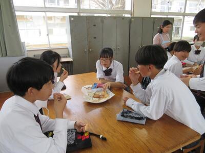生徒の皆さん、作りたてのクッキーが美味しく、会話が弾んでいます。