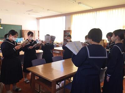 2年生の音楽です。卒業式で歌う川南町歌の練習をしています。↓