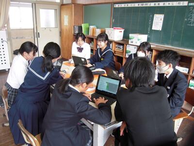 生徒:5月に生徒総会があるので、その議題の一つに各全校専門委員会からの月別目標の提案があります。その原案を作っています。