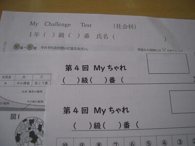 1年生は、MYチャレンジテスト(5教科単元テスト)をしています。これで4回目です。