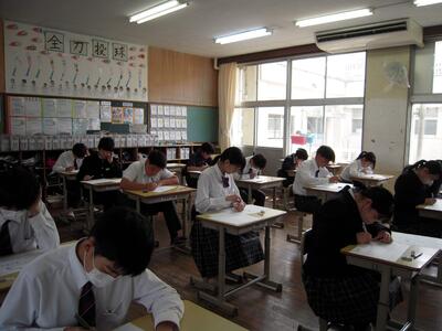 3年生が卒業して、1・2年生だけの授業となりました。校舎内は、何となく静けさが漂う雰囲気ですが、1年間のまとめの時期となって、やるべきことが多いようです。