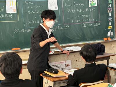 2年生担任の後藤先生が、昨日、総合的な学習の時間「立志の集い」に向けた研究授業をされました。