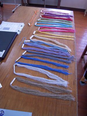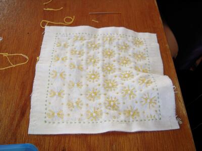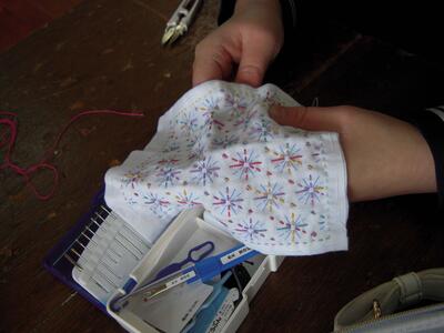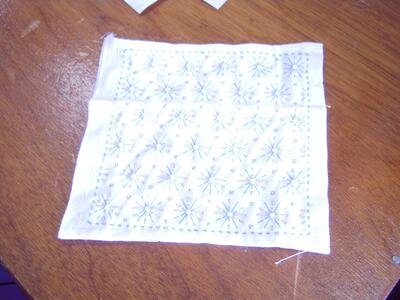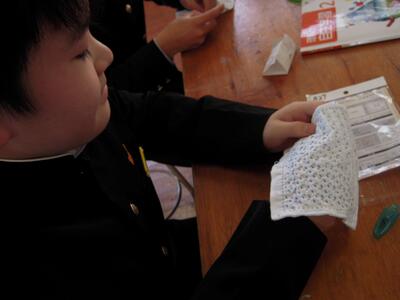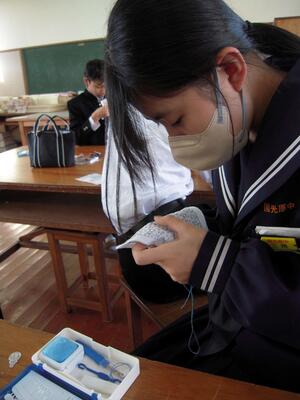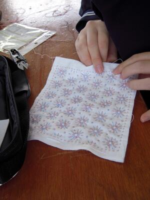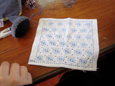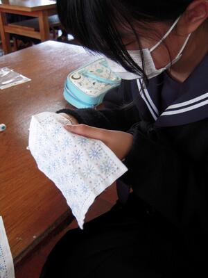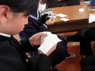 2年生は家庭科で「刺し子」をしています。できあがっている生徒もいます。