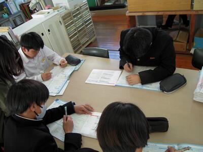 これまで立志の集いに向けた学習を4回(8時間)実施してきました。自分のたてた「志(こころざし)」を一文字であらわし、発表原稿を作成しました。