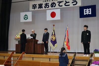 卒業生一人一人が登壇して、卒業証書を受け取ります。