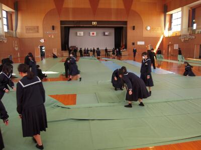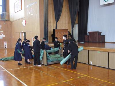 1・2年生の皆さんが協力して、卒業式会場をつくりました。