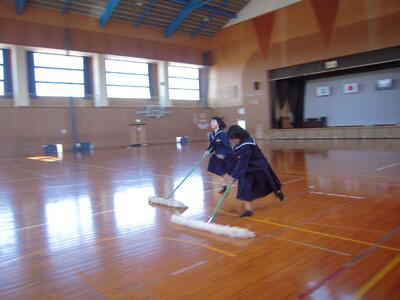 卒業式の後片付けは、1・2年生の役割です。