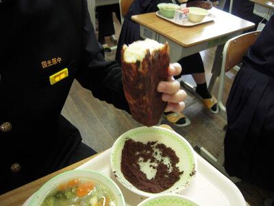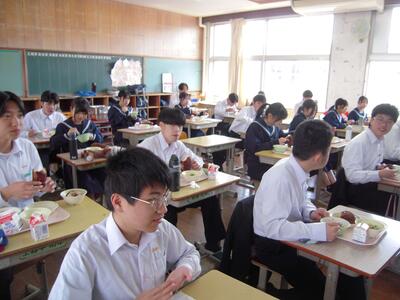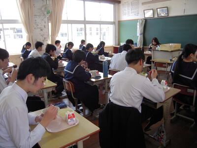 3年生は、給食を食べるのもあとわずかです。生徒の皆さん、お行儀良く食べていました。