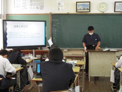 家庭科は、全国の郷土料理の学習発表をしています。