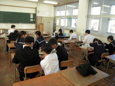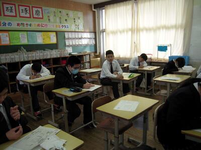 本日、県立高校推薦入学学書提出が終了し、県立高校推薦入試事前説明会がありました。集合時間、場所、持参物等を確認しています。