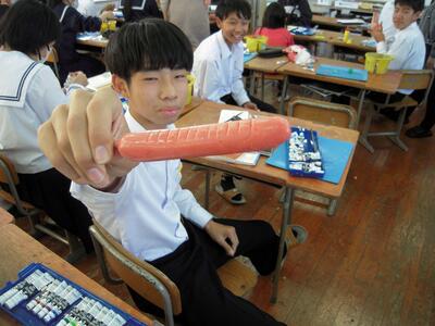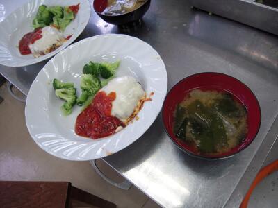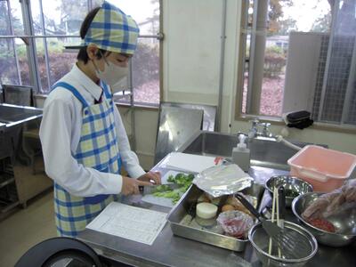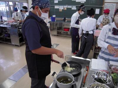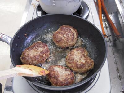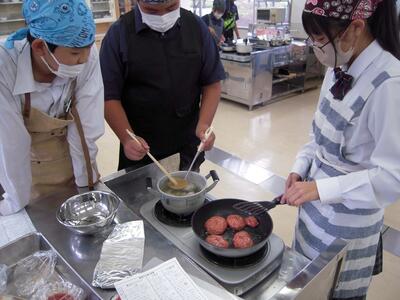 1年生が「ハンバーグ」「お味噌汁」を作っていました。