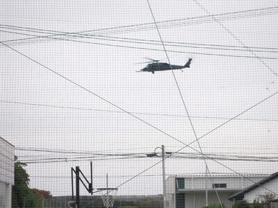 学校の外でヘリコプターの音がします。段々と近づいてくるようです。学校の上空を旋回しています。