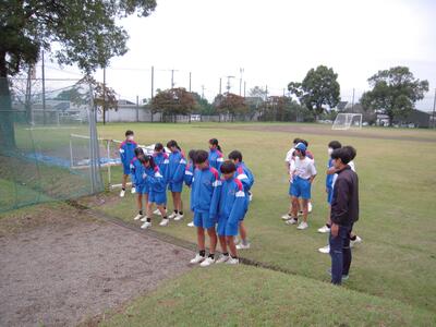 1年生がサッカー授業の様子です。ウォーミングアップのために敷地内を走るようです。