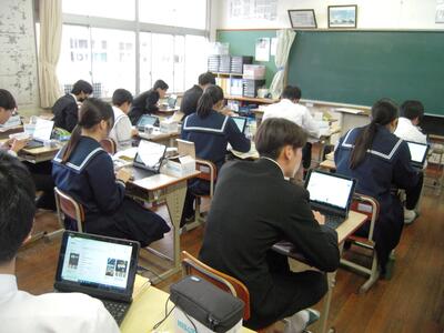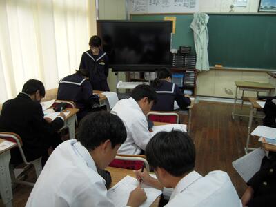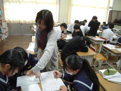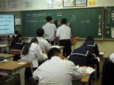 今日の授業の様子です。第2回定期テストを来週に控え、各教科では単元のまとめなどをしています。分からないところは、友達に尋ねたり、先生に質問したりして解決しています。