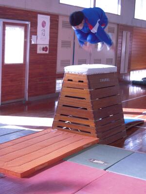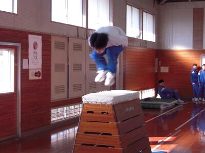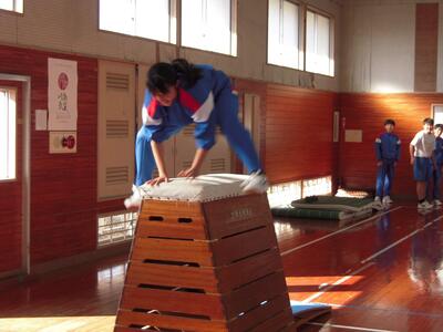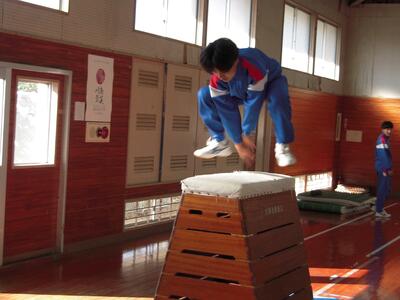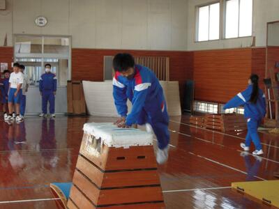 2年生保健体育の授業の様子です。跳び箱が段々飛べるようになってきました。いろいろな技を習得して楽しそうです。