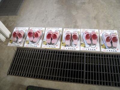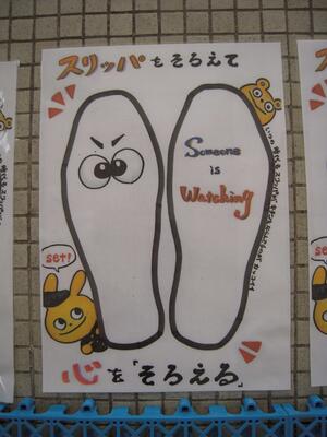 絵を描いたのは、絵画が得意な後藤先生です。委員会の皆さんが協力してトイレにはってくれました。
