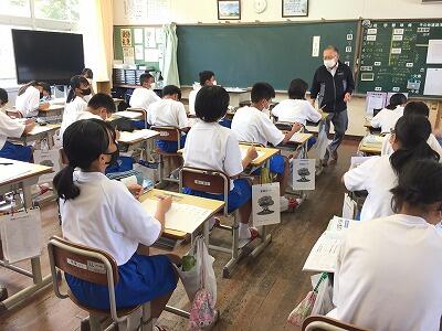 1年生の社会です。自習でプリントに取り組んでいます。↓