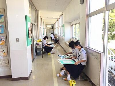 2年生の美術です。進度によって風景画かショッピングバックのアイデアスケッチに取り組んでいます。↓