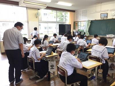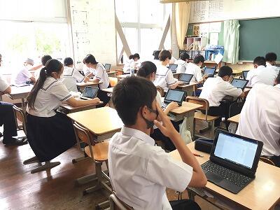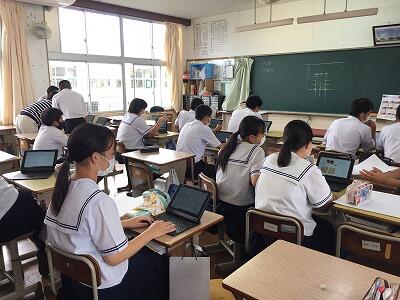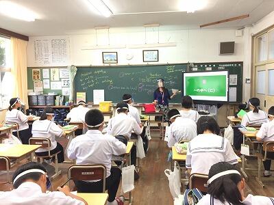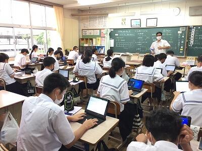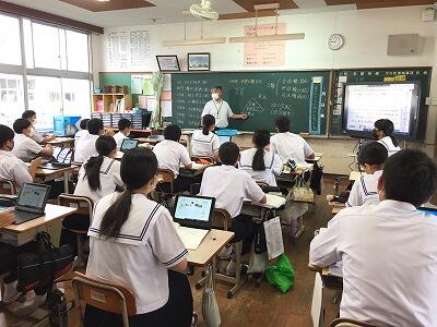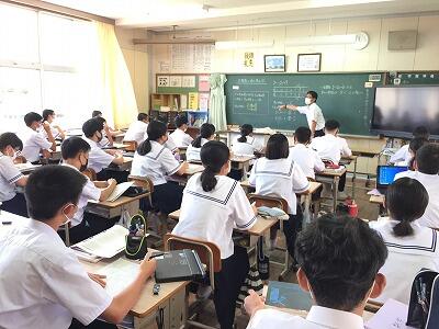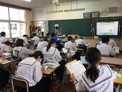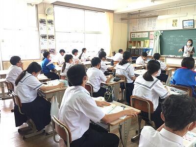 研究大会の1B英語の授業の様子です。たくさんの先生方の参観でしたが一生懸命取り組みました。↓