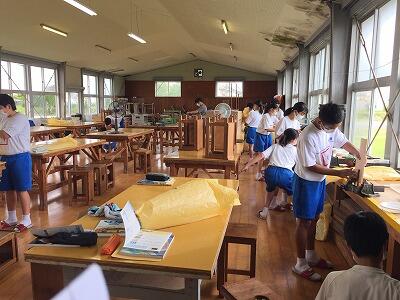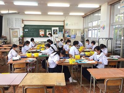 3年の美術です。ステンシル版画、ペーパーウェイト制作に取り組んでいます。↓