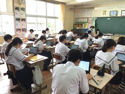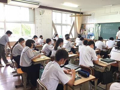 2年の教室です。不安や悩みストレスの対処法の意見交換をしています。↓