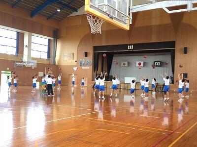 2年生の修学旅行に向けての準備です。いろんな並び方が素早く出来るように練習です。↓