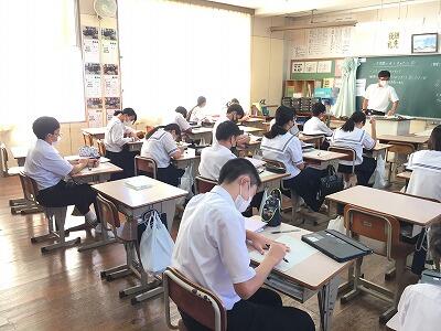 2年生は本日から金曜日まで修学旅行です。本日は水曜日ですが6時間授業(清掃なし)で、帰りの会終了15:30、部活動終了17:30、下校完了17:45です。部活動は1年生のみの活動となります。放課後に3年生の希望者を対象に公営塾(英語、15:20~17:20)があります。