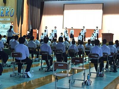 昨日は体育大会結団式、県大会選手激励式がありました。