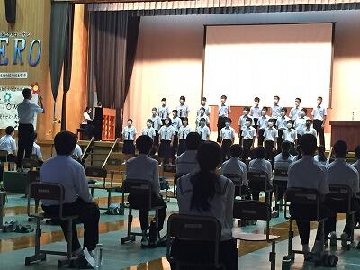3年生の音楽です。合唱コンクールの歌を練習しています。↓