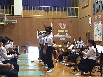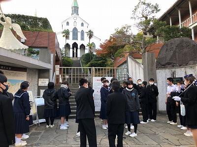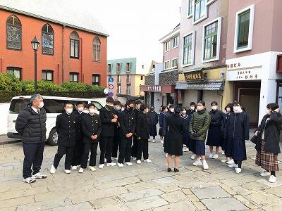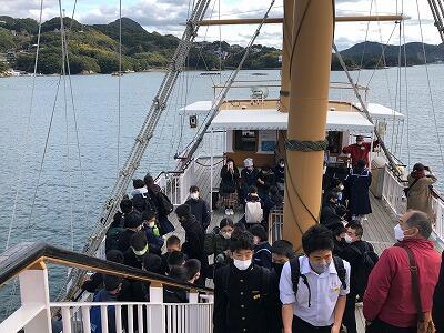 2年生の修学旅行前日指導の様子です。集団行動の練習もしています。↓