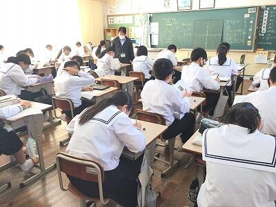 本日は5時間授業で、帰りの会終了15:05です。2年生は明日から修学旅行ですので、部活動はありません。本校で県中学校英語研究大会が行われ、県内の多くの先生方が来校されます。