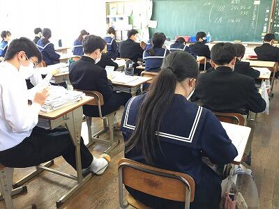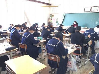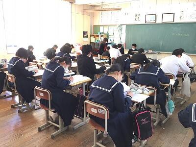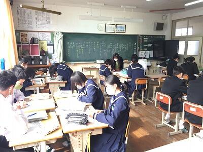 3年生は受検報告書作成、面接練習、テスト勉強をしています。↓