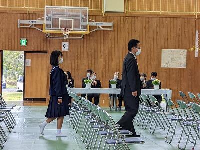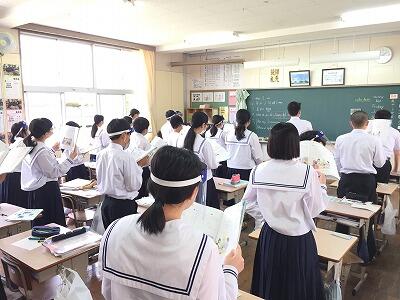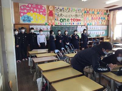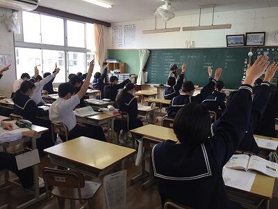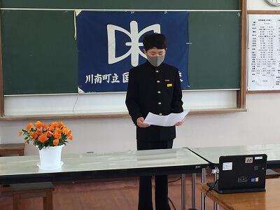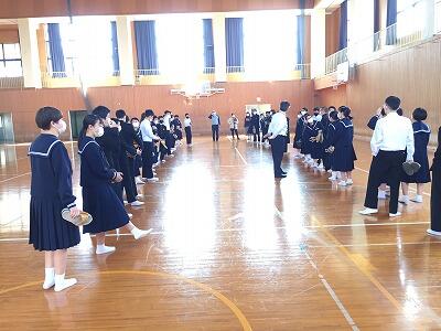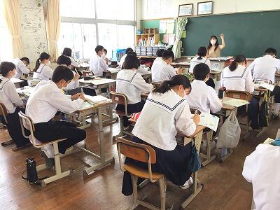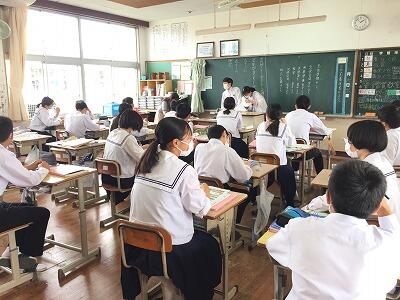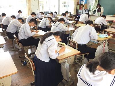 本日は定期テスト2日目です。5時間授業(清掃なし)で、帰りの会終了14:30です。リフレッシュデーですが部活動ができる時間が確保できるため行います。部活動終了16:30、下校完了16:45です。2年の「ふるさと学習」の一環で、日髙町長が講話をしてくださいます。