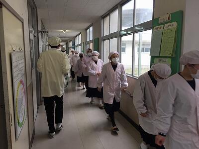 各学級並んでコンテナ室に給食を取りに来ます。↓