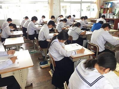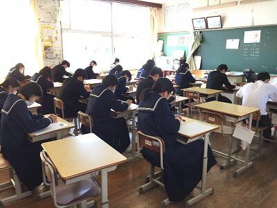 本日は定期テスト1日目です。5時間授業(清掃あり)で帰りの会終了15:00となります。テスト中のため部活動は休みです。