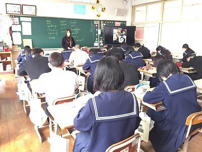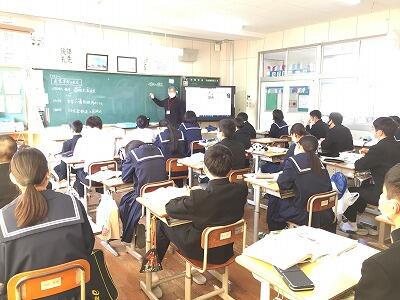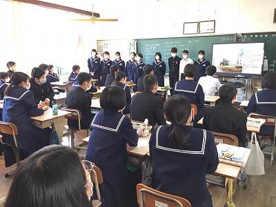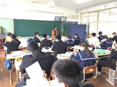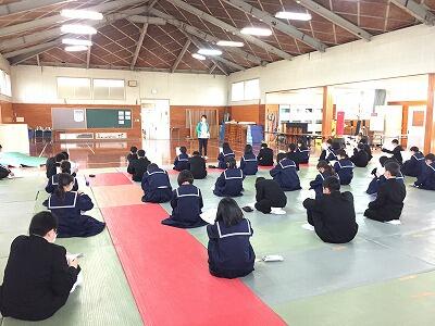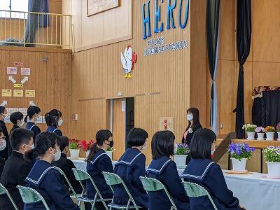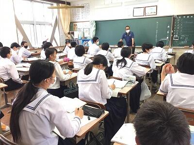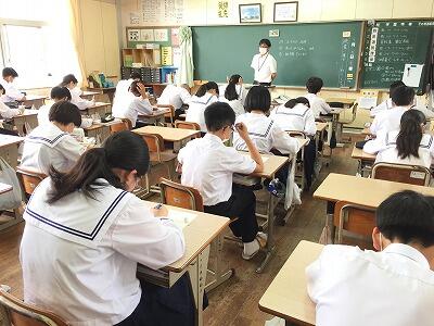 昨日は日髙町長においでいただき、2年生に講話をしていただきました。少年時代の生活や部活動、町長としての取組や夢、2年生への期待や希望などをお話ししていただきました。