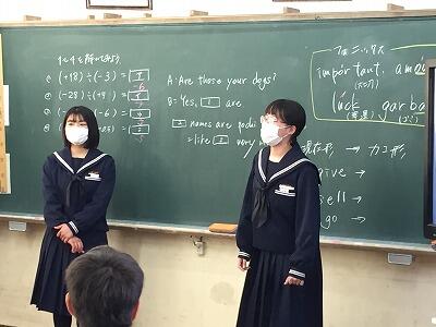 2年生の英語です。隣の生徒を相手に英語を話す練習をしています。↓