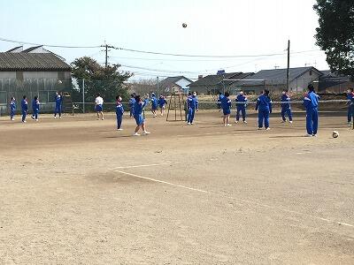 1年生の保体です。バレーボールでオーバーハンドパスの練習をしています。↓
